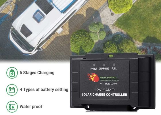 8A 12V Mały rozmiar IP65 wodoodporny inteligentny sterownik ładowania słonecznego PWM