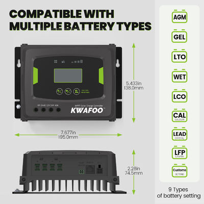 Kontrolownik słoneczny KWAFOO 40Amp MPPT jest zaprojektowany do montażu ściennego, co pozwala na łatwą instalację i korzyści z oszczędności miejsca.Kontroler jest wyposażony w kompleksowe mechanizmy ochrony, aby chronić układ słoneczny, w tym ochronę przed przeładowaniem, ochronę przed zwarciem i ochronę przeciwpolarności.